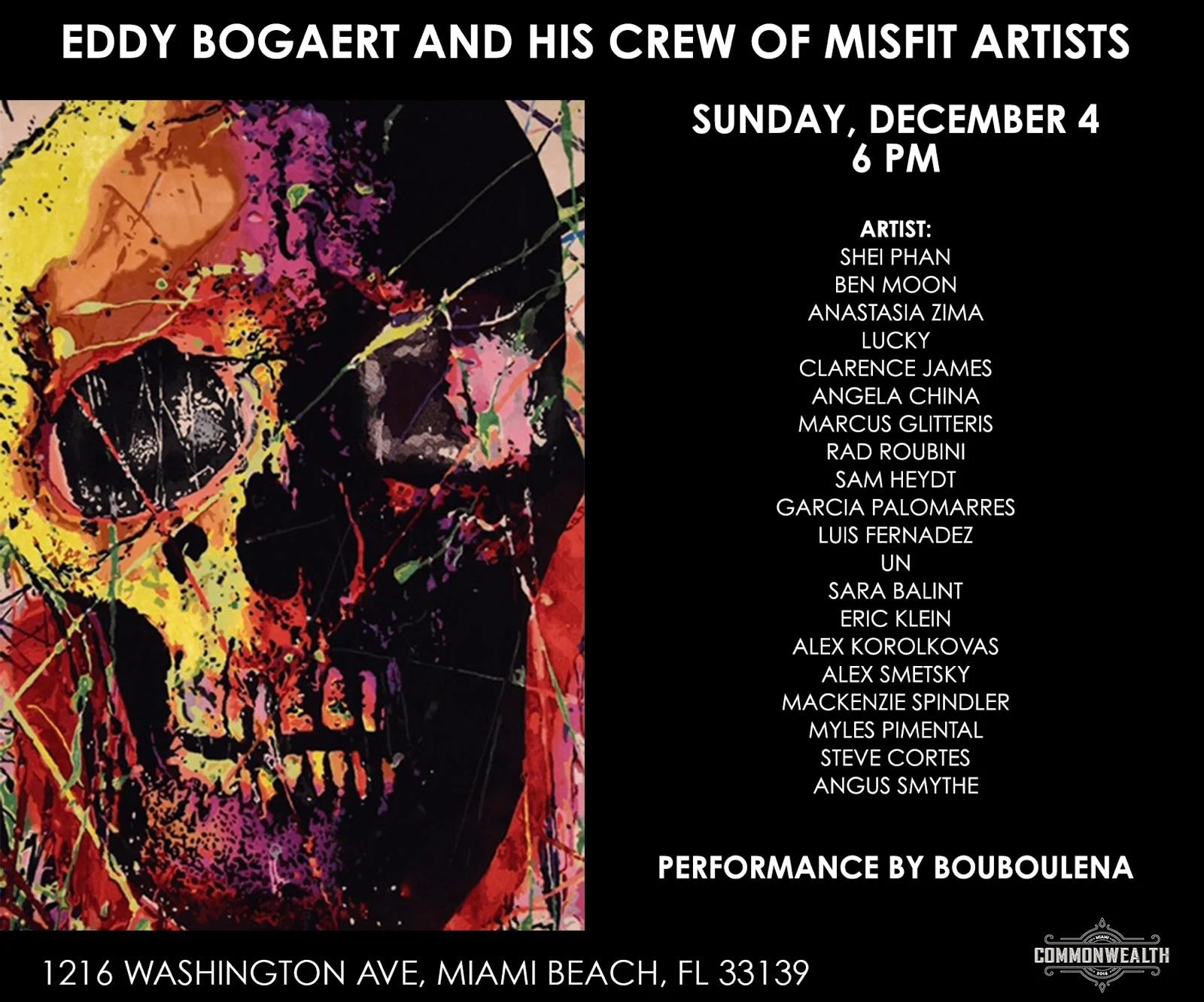 ART Basel 2016 - Eddy Bogaert & His Crew of Misfit Artists Sunday, December 4, 2016 6:00 PM 11:00 PM 18:00 23:00 1216 Washington Avenue Miami Beach, FL, 33139 United States (map) Google Calendar ICS